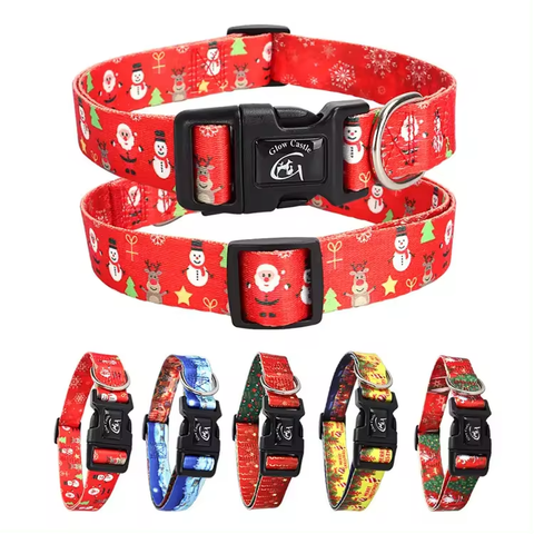 Suave y cómodo árbol de Navidad muñeco de nieve Santa estampado patrón Nylon mascota Collar Durable liberación rápida hebilla gato perro Collar